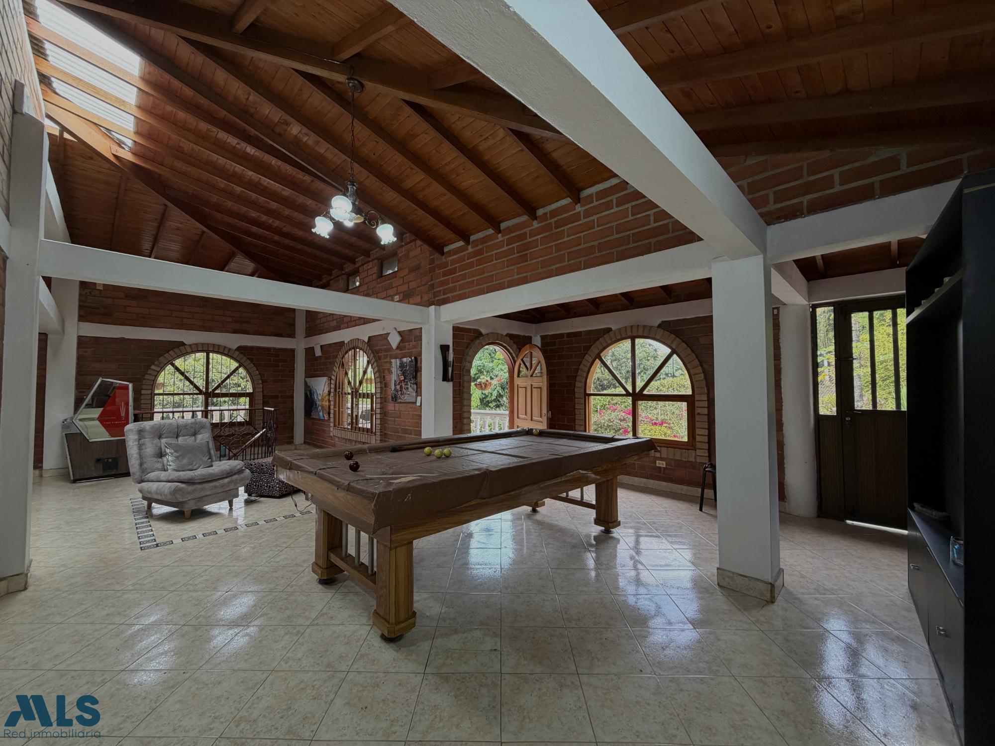 This comfortable property located in Copacabana, 12 minutes from the Niquia metro station and less than 1 kilometer from the highway, offers a tranquil retreat surrounded by nature, perfect for disconnecting from daily life... just 30 minutes from Medellín. It features a 212m² two-story house with spacious rooms and hallways. The first floor includes a living/dining room, kitchen, laundry area, two bathrooms, and two bedrooms. The second floor offers a large living room with a pool table, two bathrooms, and two bedrooms. Additionally, there is a separate 18m² cabin with one bedroom, one bathroom, and a kitchen. The property also includes a septic tank, two gates, ample parking, a stone fountain, fruit trees, beautiful landscaping, and a swimming pool. Utilities include community water, electricity, and gas (EPM). Don't miss this opportunity! Contact us to schedule a visit!