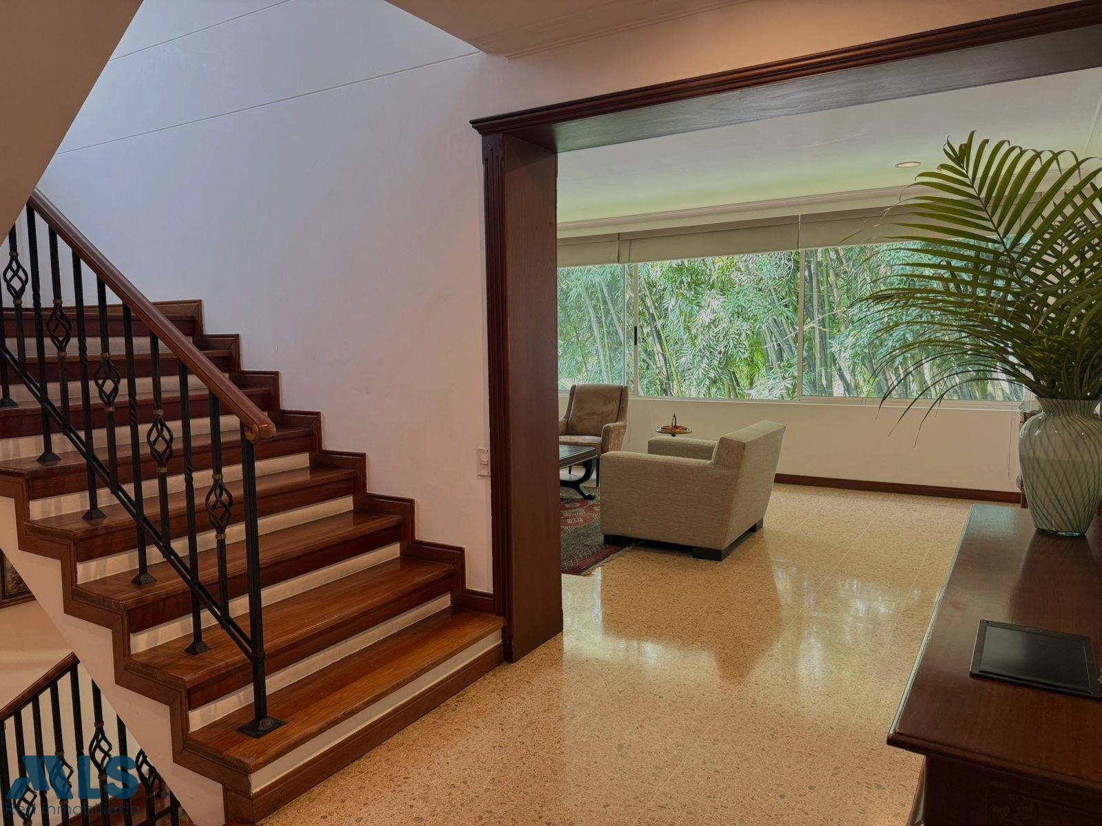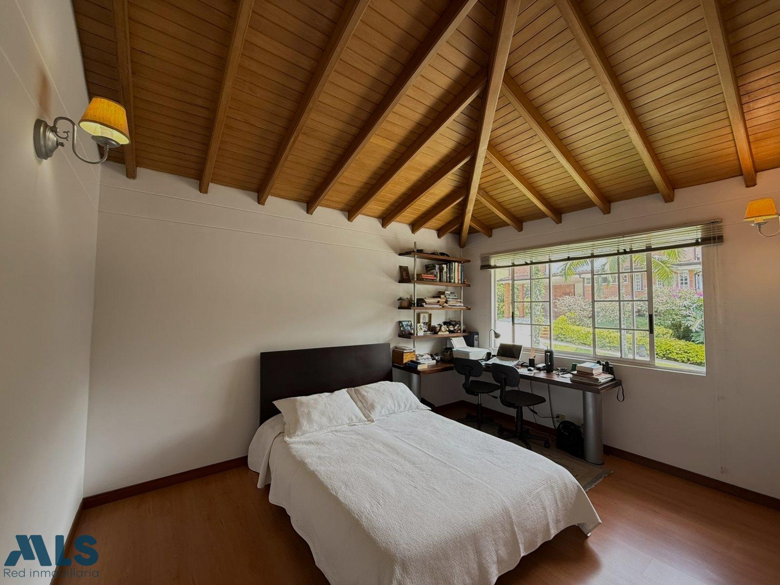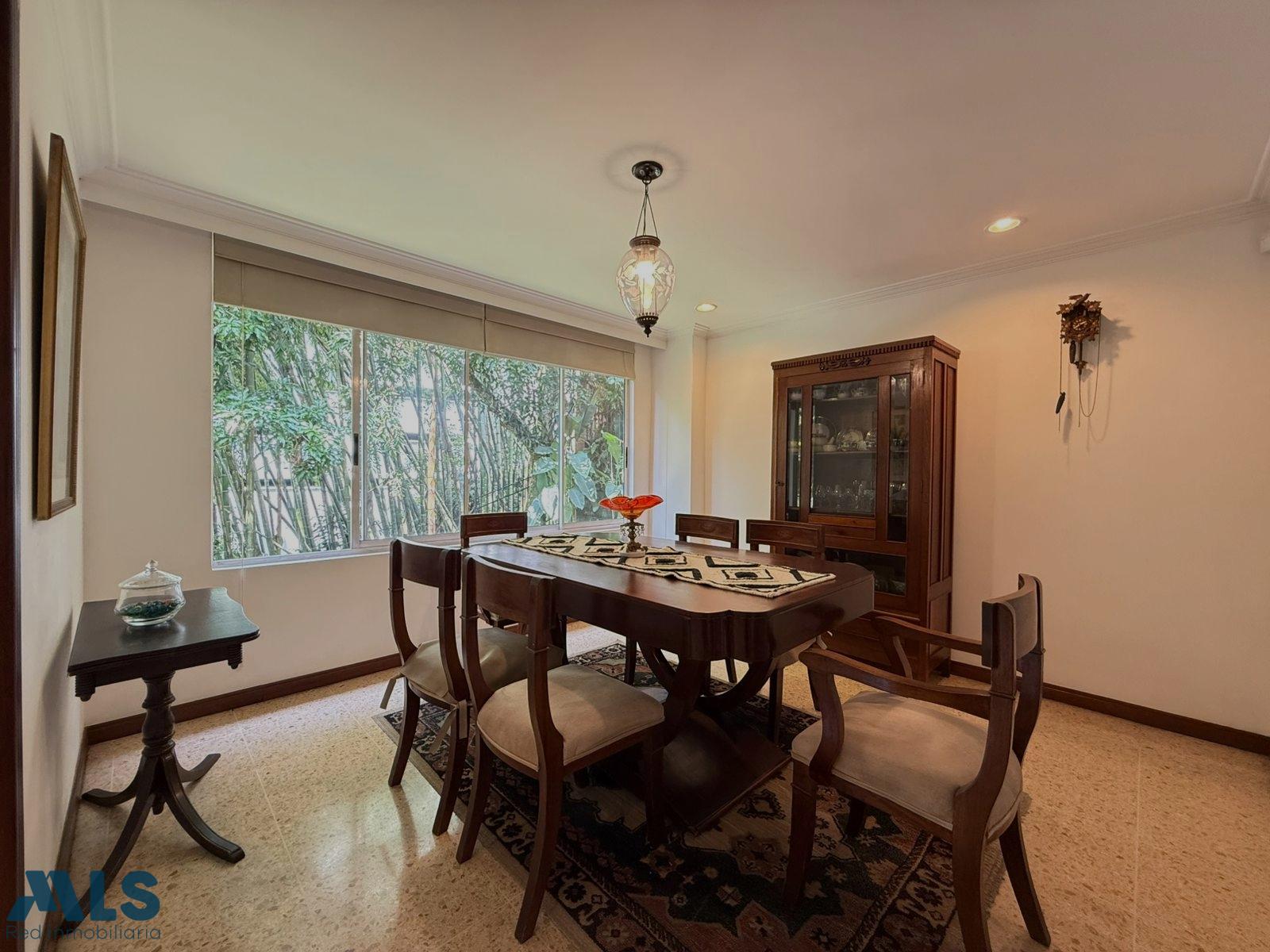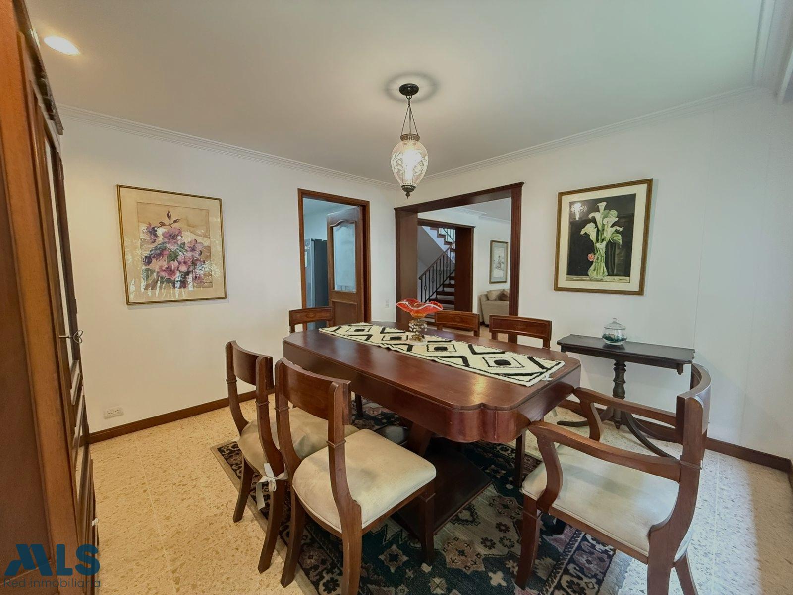 For sale: Three-story house located in an exclusive area of Envigado. The gated community features 24-hour security, a children's playground, and consists of only 19 houses, guaranteeing privacy and tranquility. The property sits on a 303.22 m² lot and has a total constructed area of 275.69 m², distributed functionally and generously, along with a beautiful garden. The house has 4 bedrooms, 3 of which have en-suite bathrooms and walk-in closets, plus an additional bedroom on the first floor, a study, a full guest bathroom with a Turkish bath, a fully equipped kitchen, a laundry area, a dining room, 2 very spacious living rooms, a hallway leading to the bedrooms, a maid's quarters with a bathroom, a linen closet, and a fully equipped kitchen with a laundry area. It also includes 2 parking spaces and a storage room.